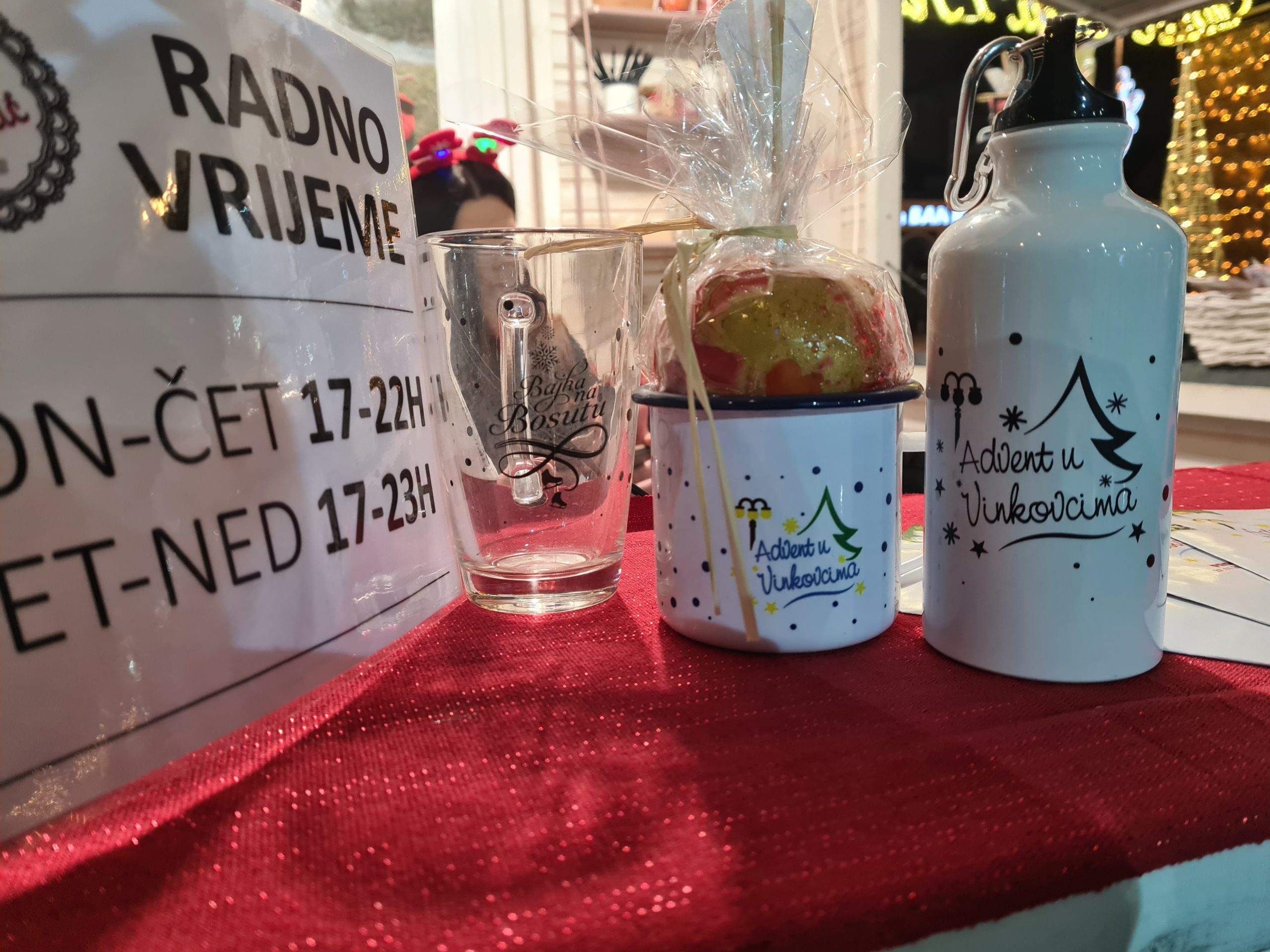 Boro Brekalo vlastitim je rukama izradio i zanimljive ukrase za bor. I inače ih radi personalizirane, a ovoga puta ih je posvetio gradu Vinkovcima. Uz sve to, spomenimo još kako možete kupiti i brojne druge suvenire ovogodišnje manifestacije – aluminijsku bocu, lončić, šibice, olovke i staklenu šalicu – sve s prepoznatljivim simbolom Adventa u Vinkovcima.