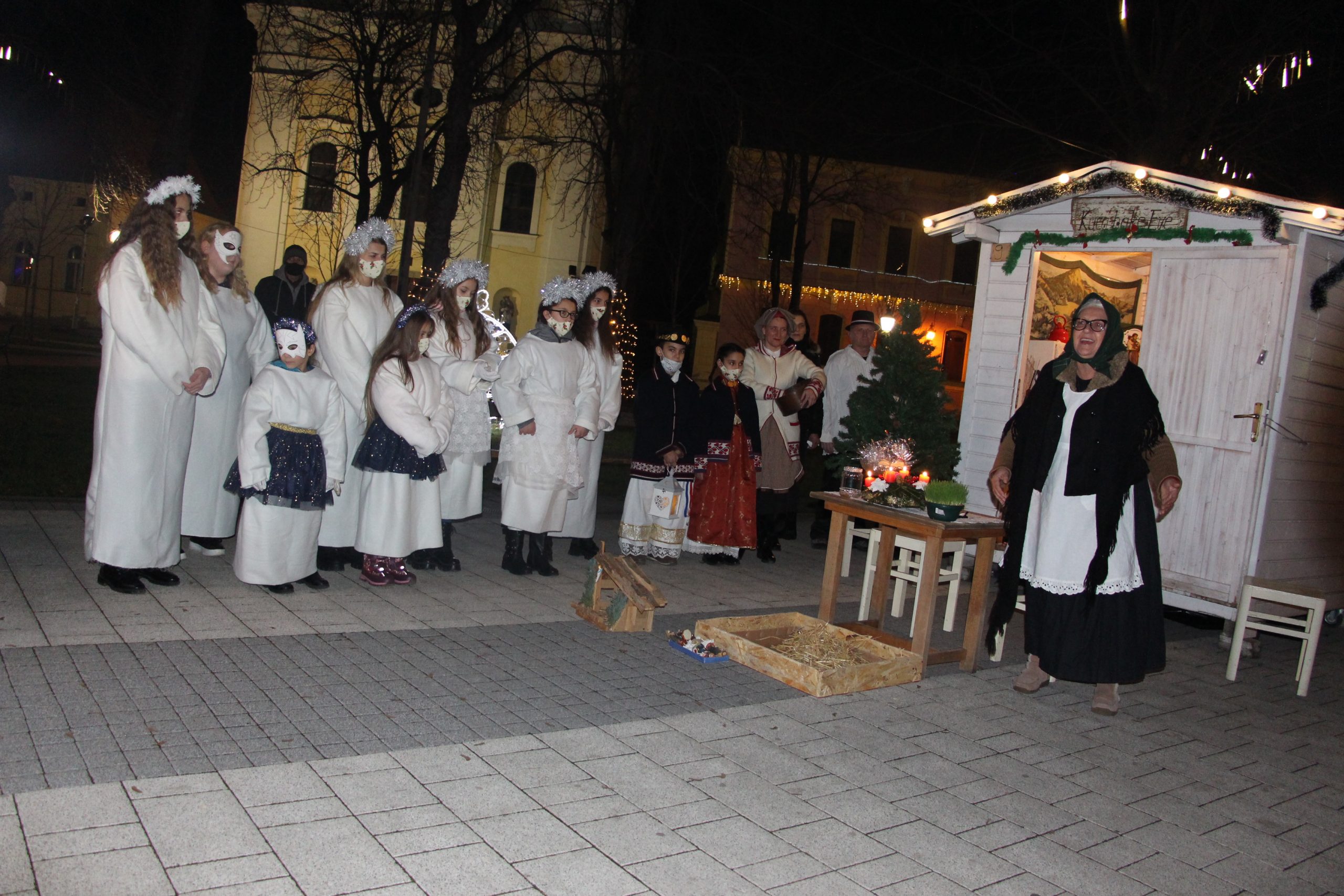 Kako nam se Božić približava večeras su mališani mogli uživati u prikazanju Badnjaka kakav je nekad bio. Tradicionalne kršćanske pjesme, kobasica oko vrata i slama ispod stola samo su neki od „lajtmotiva” čarobnih priča popularne bake Eve. Nekoliko trenutaka poslije oko središnjeg kipa Svetog Trojstva počeli su se okupljati vjernici kako bi upotpunili veliki adventski vijenac i zapalili anđeosku svijeću.