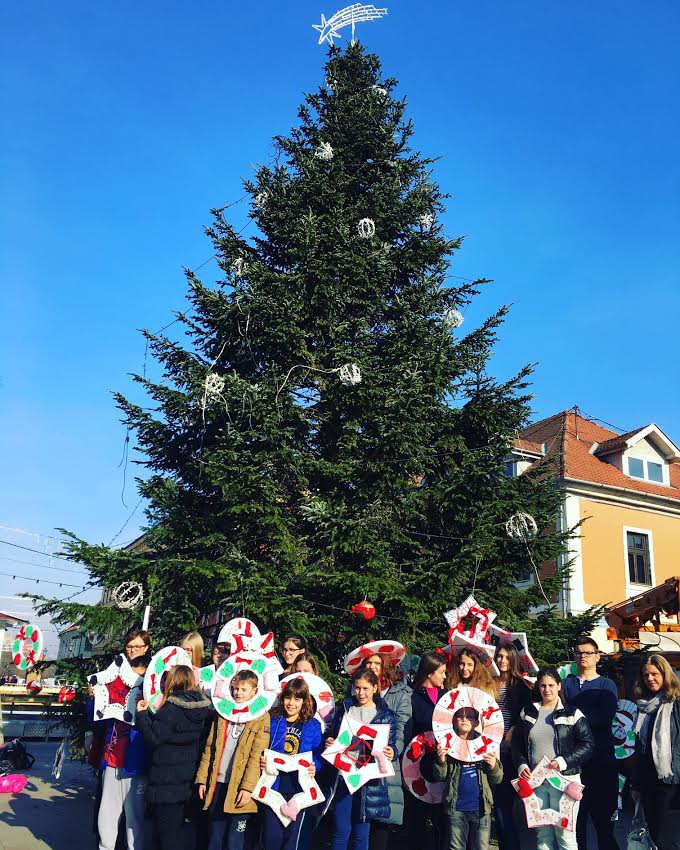 Osnovci ukrasili veliku božićnu jelku u pješačkoj zoni