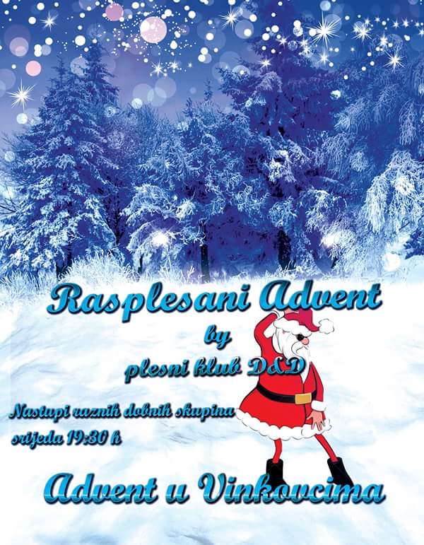 Mladi, ali i oni nešto manje mladi Vinkovčani i njihovi gosti, moći će u srijedu na vinkovačkom Korzu od 19,30 sati uživati u plesu i priredbi Rasplesani Advent što ga u sklopu Adventa u Vinkovcima priređuje plesni klub D&D. U programu će nastupiti razne dobne skupine plesača, a plesu se mogu priključiti i gledatelji.